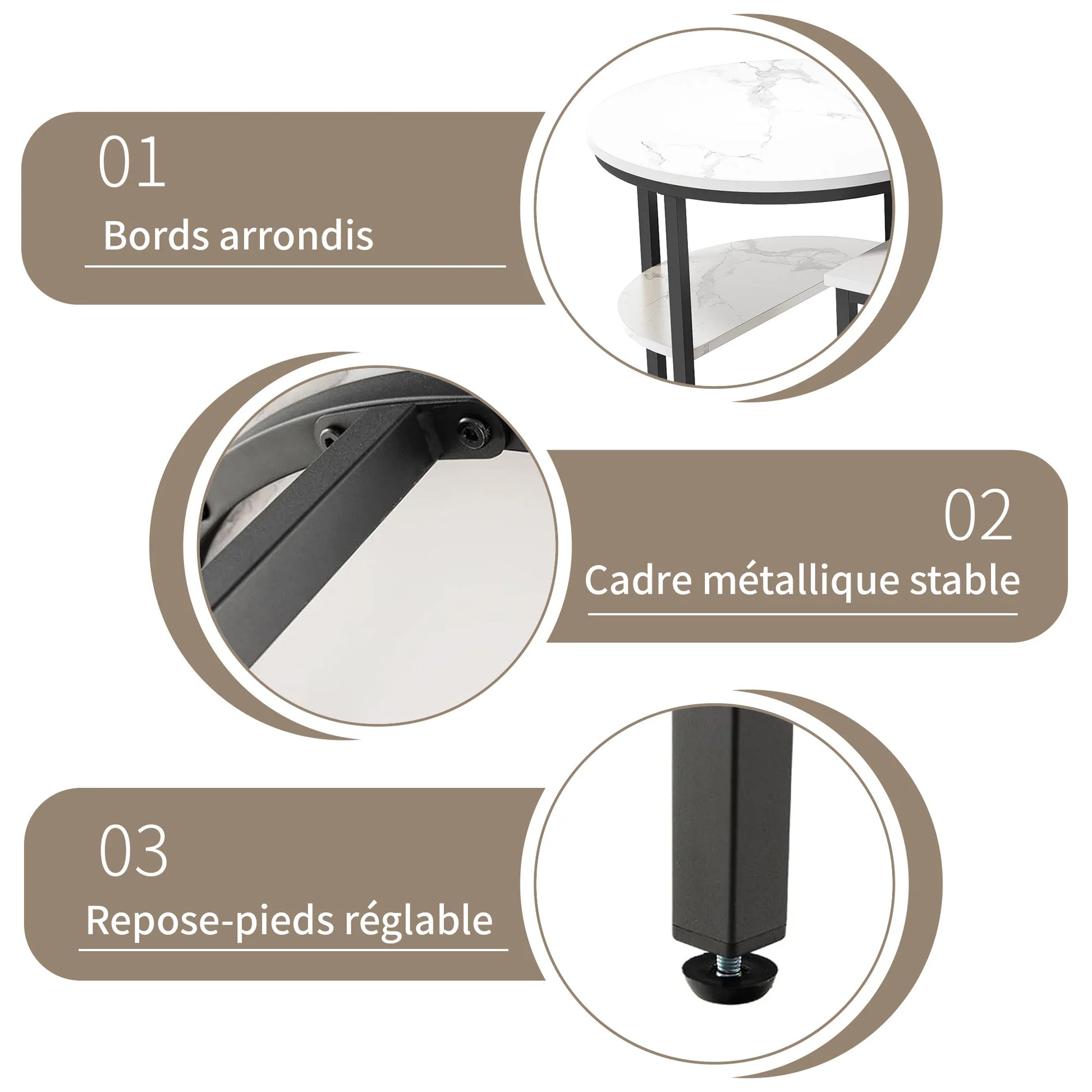 Les plateaux en MDF effet marbre sont prévus pour un usage régulier et se nettoient facilement avec un chiffon doux. La structure en métal noir assure une bonne stabilité et une tenue durable. Les finitions soignées mettent en valeur votre tapis, votre canapé et vos objets décoratifs.