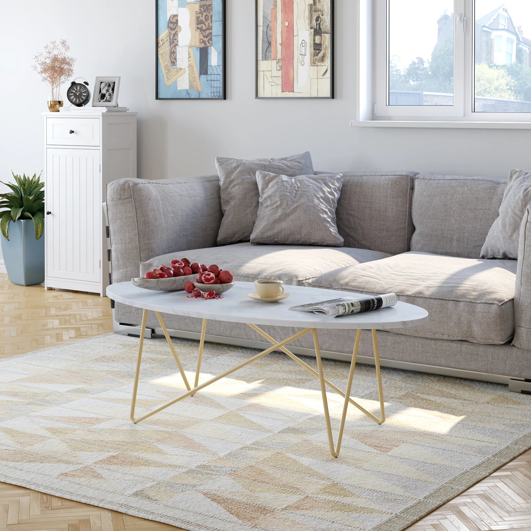 Table Basse Ovale Elea – Blanc, Or &...