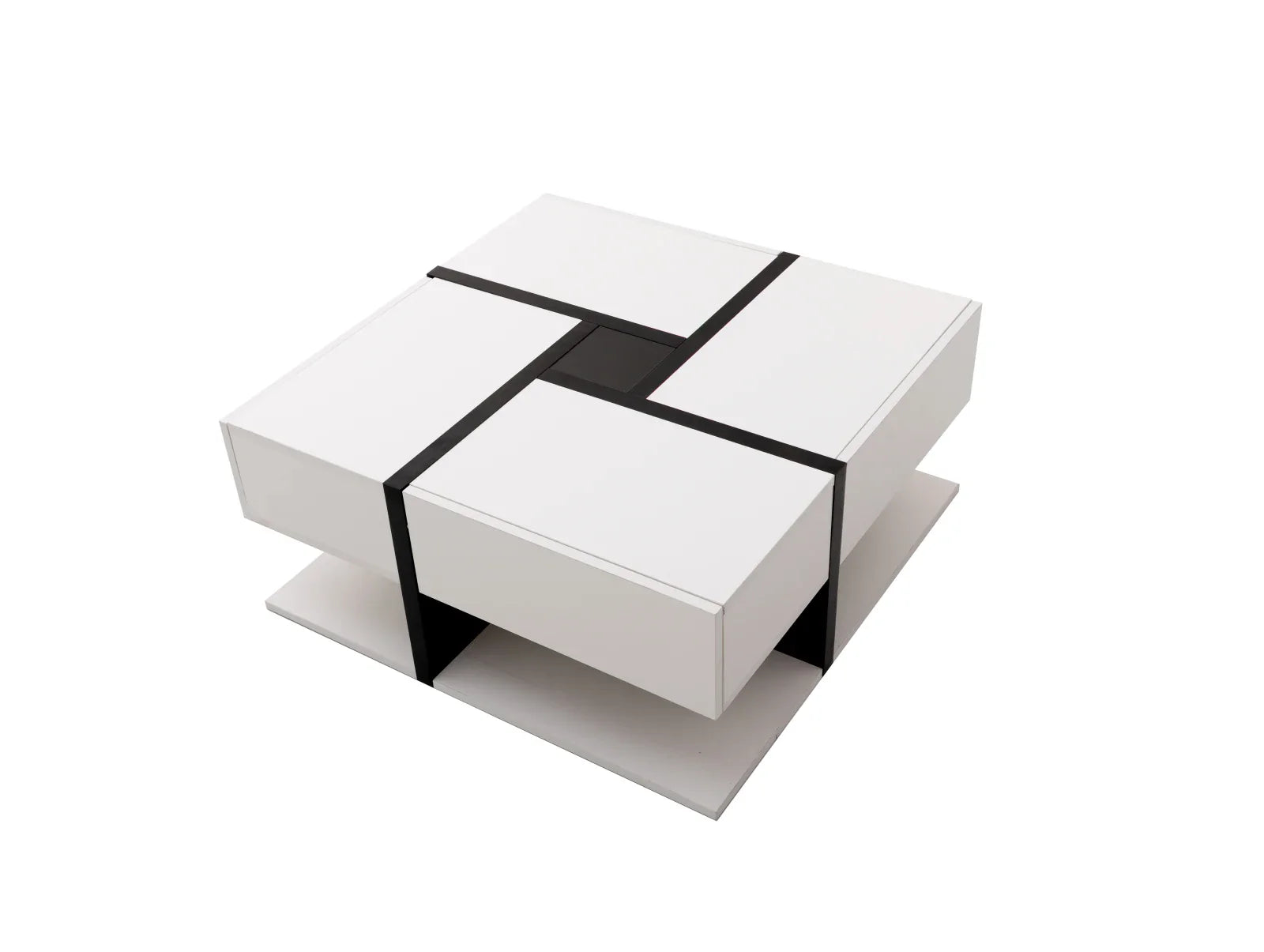 Table basse en bois Lumina : table carrée noire et blanche avec rangements intégrés
