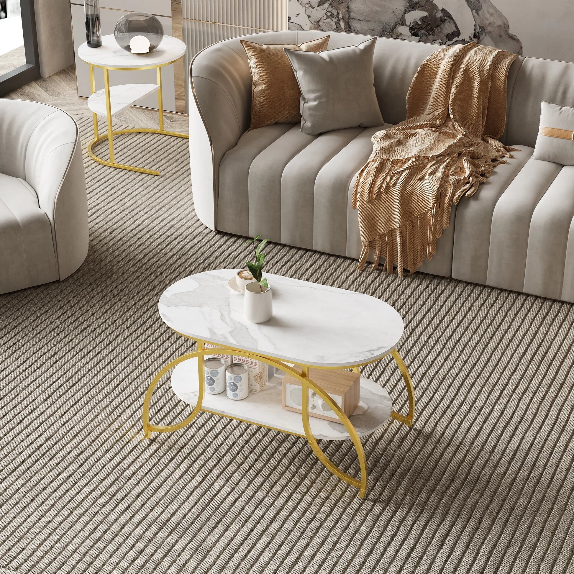 Tables basses gigognes Arcos : duo marbre et métal avec double niveau de rangement