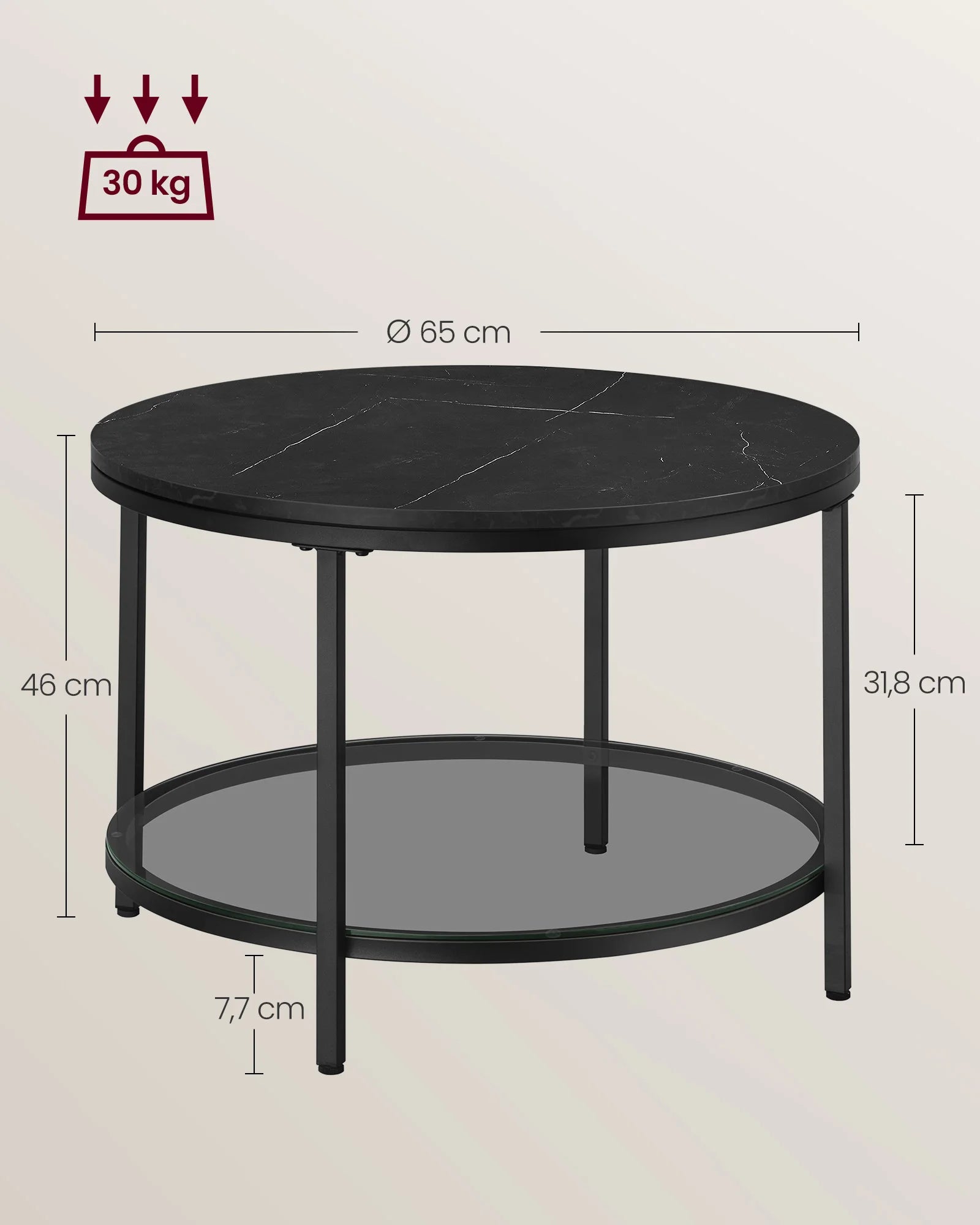 Dimensions : Ø 65 × H 46 cm (avec pieds réglables inclus)
